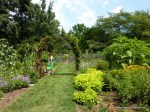 Today I was surprised: I fully expected to be deadheading Lilacs and instead ended up digging two cherrys out of large, anerobic, stinky planters. The boxes weren’t draining, and the trees essentially drowned. The forklift showed up loaded with plywood sheeting; we laid down plywood from perennial garden way to the first two planters of the visitors center. We backed up a Toro Workman to the planter and started shoveling the slop out of the planters and cutting roots. Then, we brought the forklift in, attached pulling straps around the tree and fed them through the tines and pulled the trees out. Thank god we didn’t have to empty the planters of the mud.