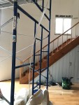 We bought a round house that we wanted to make cozier — so we added 2.5″ of polyiso fiberglass-backed foam to the inside walls, set furring strips every 16″ (try to do the math on a round wall) and then hung 3/8″ sheetrock. All of this is being guided by Julian, a very forward thinking green builder and all around interesting guy.